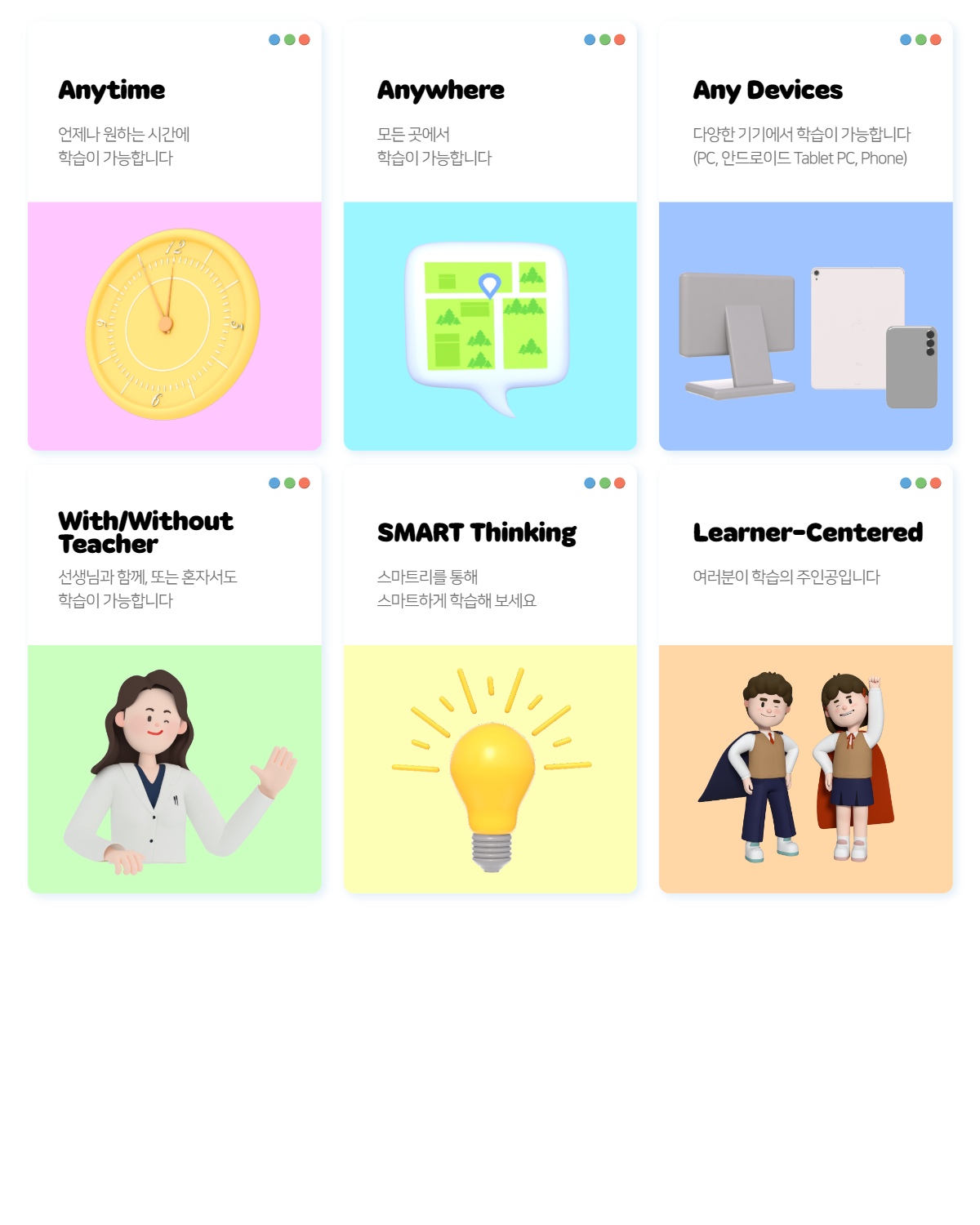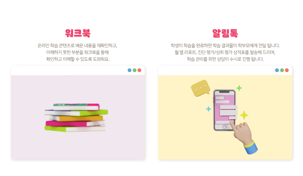 마치 원어민 선생님과 수업 하듯 다양한 캐릭터와의 상호작용을 바탕으로 한 능동적 수업 참여가 가능합니다.